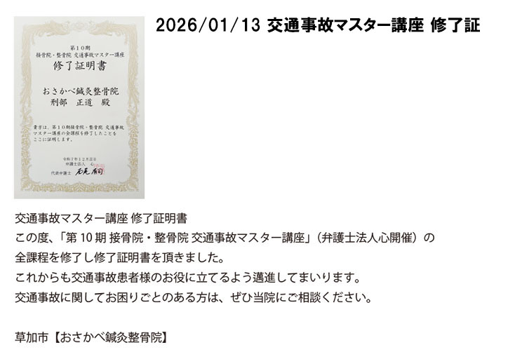 - 交通事故マスター講座 修了証明書